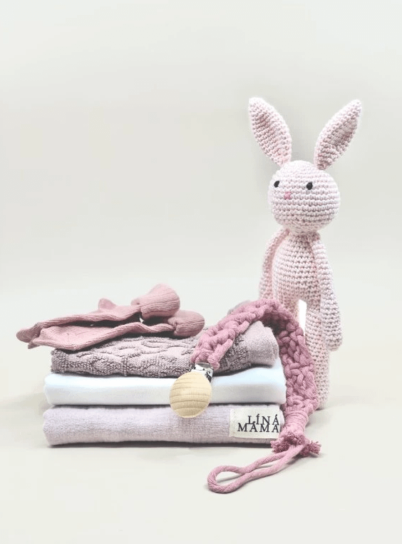 A proč říkáme, že obsahuje důležité maličkosti? Mušelínová plenka je velmi měkká a ideální jak v létě, tak v zimě. Krásný vyšívaný ručníček, můžete používat nejdříve jako žínku a později jako ručník na ručičky či obličej. A protože k nám často chodí skřítci a dětské nožičky potřebují teplo, ponožek tedy nemáme nikdy dost. A o bodýčkách ani nemluvě. Kamarád zajíc je důležitý na cesty, kdy by s sebou miminko mělo mít něco, co dobře zná. Je akorát tak velký pro malé ručičky. No a klip na dudlík zaručí, že ho nikde neztratíte či neušpiníte, že jo.