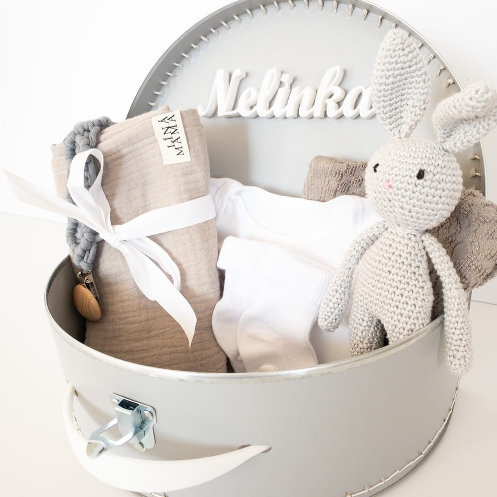 První kufřík – je dárková sada pro miminko s důležitými maličkostmi, která maminka jistě ocení. Samotný kufřík vám vydrží dlouhá léta a můžete v něm uchovávat vaše vzpomínky na první rok miminka. První botičky, jmenovku a pásek z porodnice, první lžičku, dudlík, oblíbeného muchláčka a další předměty, které jsou pro vás důležité a jsou tím pravým symbolem dětství toho vašeho malého uzlíčka štěstí. Ze srdce věřím, že se ke kufříku budete rádi vracet a budete prohlížet všechny ty vzpomínky na to, kdy to bylo ještě maličké miminko ♡