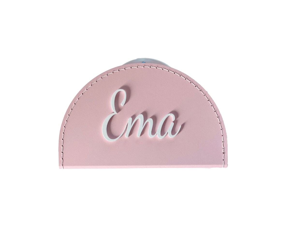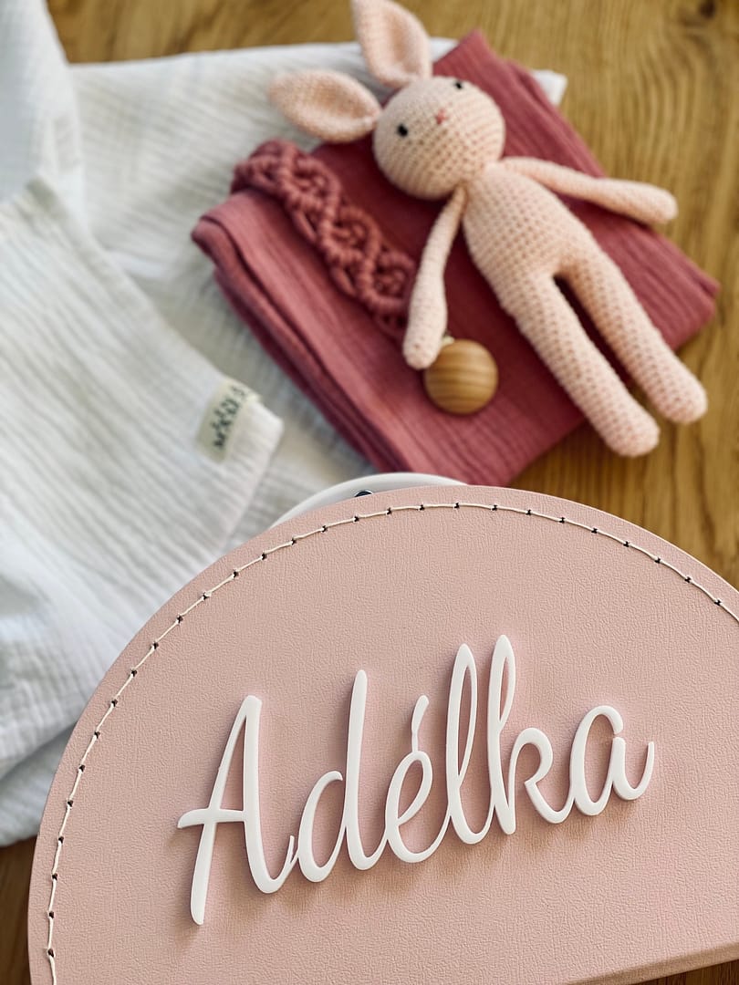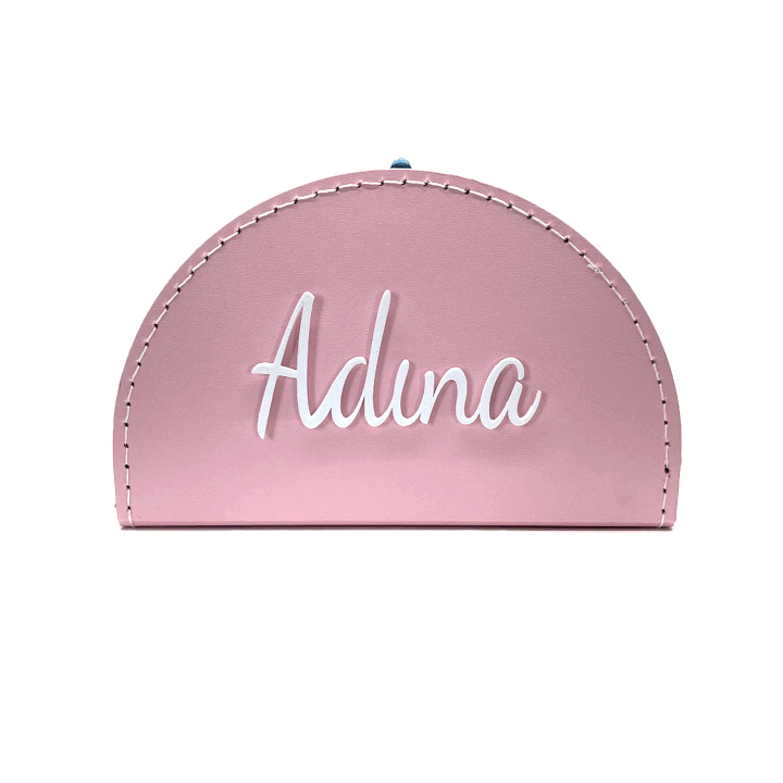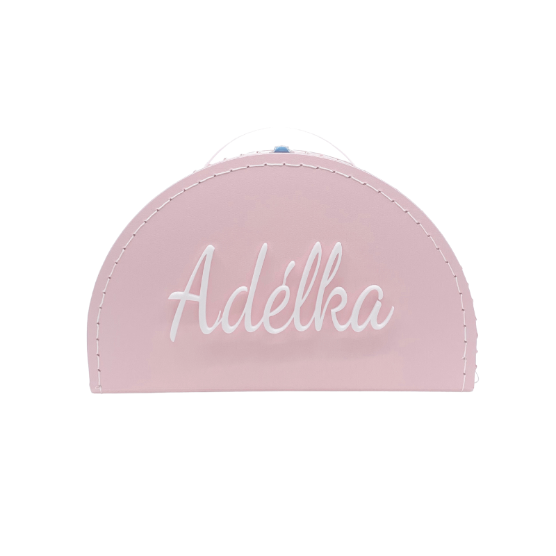 Růžový kufřík v půlkruhovém provedení s bílým nápisem dle vašeho přání 🤍
